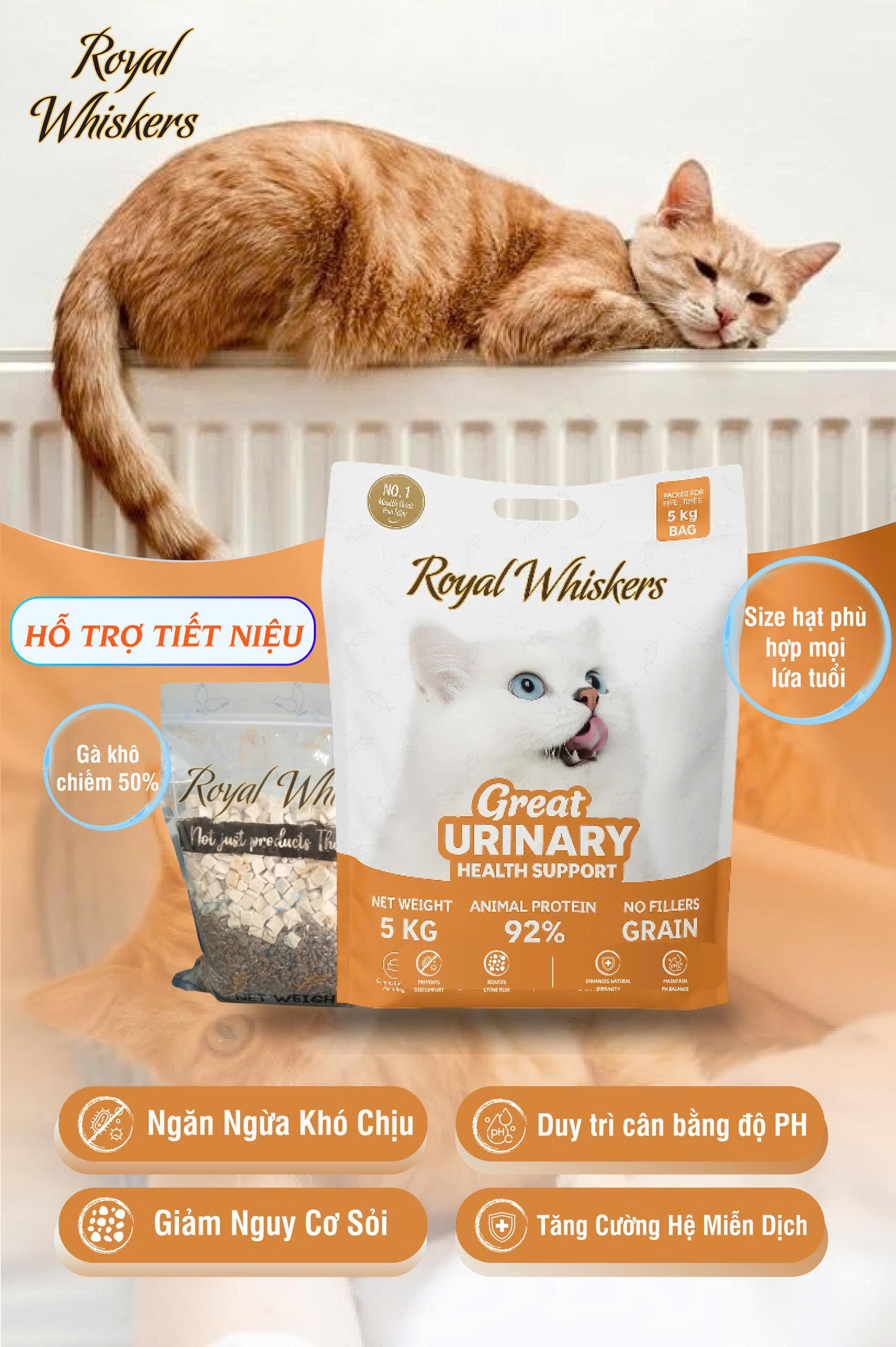 Hạt cho mèo Royal Whiskers là dòng thức ăn cao cấp, được thiết kế đặc biệt để đáp ứng nhu cầu dinh dưỡng tự nhiên của mèo ở mọi lứa tuổi. Với công thức cải tiến, sản phẩm chứa hàm lượng đạm cao và không sử dụng ngũ cốc, giúp mèo phát triển khỏe mạnh, lông bóng mượt và hệ tiêu hóa ổn định.